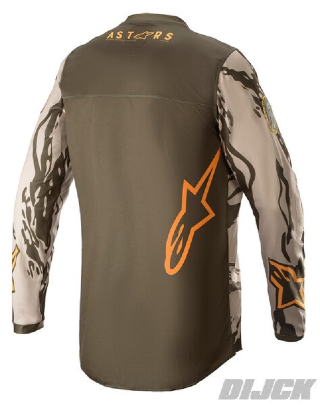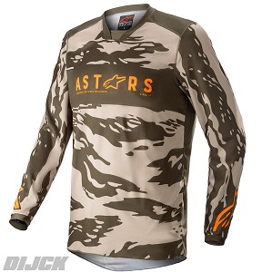 ALPINESTARS Jersey Racer Tactical Military Sand / Camo / TangerineSize S- Advanced poly-fabric construction is lightweight, moisture-wicking and durable, with a machenical stretch feature for rider comfort.- Stretch collor and wrist cuff neck construction for fit and comfort.- Cut longer in the rear for greater coverage when riding.- Overlock stitching throughout for additional durability.- Fitted wrist cuffs for an optimized fit.- Fade resistant sublimated graphicsALPINESTARS Partnumber: 37612226840