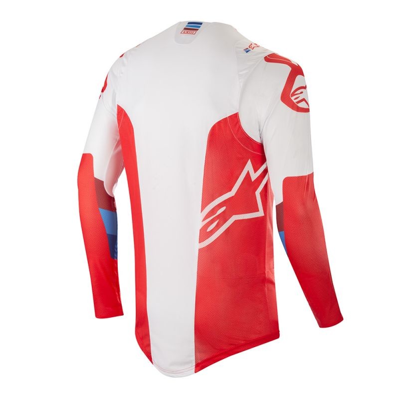 • Poly-fabric construction is lightweight, moisture wicking and durable. • Cut longer in the rear area for compatibility with Alpinestars MX pants. • Stretch collar neck construction for fit and comfort. • Fade resistant sub-laminated graphics • Fitted wrist cuffs for optimised fit