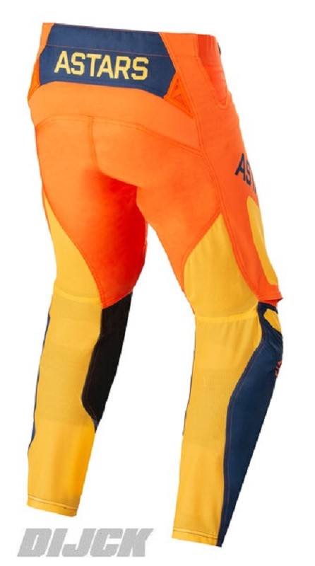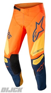 ALPINESTARS Pants Youth Racer Factory Orange / Dark Blue / Yellow Size 24- Large rear stretch panel insert provides increased comfort and flexibility to the waist and lower back.- Extensive lightweight and ventilated mesh with stretch panel inserts for an optimized fit.- Mesh lining for superior comfort.- leather reinforced inner-leg panels for enhanced heat resistance, grip and comfort.- Ratchet closure with waist adjustment straps for a secure, personalized fit.- Gripper internal waist elastic band helps keep garment in position.- Convenient interior hop pocket for key/coin storageALPINESTARS Partnumber: 37410224075