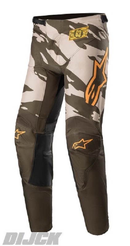 ALPINESTARS Pants Youth Racer Tactical Military Sand / Camo / Tangerine Size 24- Large rear stretch panel insert provides increased comfort and flexibility to the waist and lower back.- Extensive lightweight and ventilated mesh with stretch panel inserts for an optimized fit.- Mesh lining for superior comfort.- leather reinforced inner-leg panels for enhanced heat resistance, grip and comfort.- Ratchet closure with waist adjustment straps for a secure, personalized fit.- Gripper internal waist elastic band helps keep garment in position.- Convenient interior hop pocket for key/coin storageALPINESTARS Partnumber: 37412226840