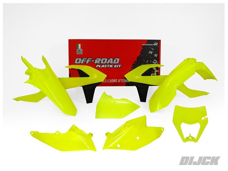 RACETECH Plastic Kit EXC125-300 17-19 / EXC-F250-500 17-19 FLUOR YELLOW - Front Fender Fluor Yellow - Rear Fender Fluor Yellow - Radiator Cover Fluor Yellow - Side Panels Fluor Yellow - Airboxcover Left Fluor Yellow - Headlight Plastic Fluor Yellow
