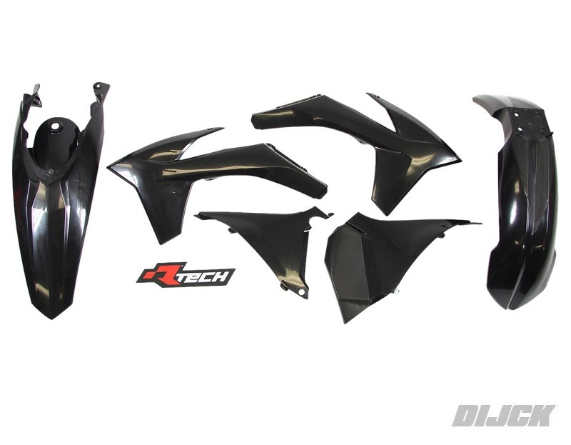 RACETECH Plastic Kit BLACK/ZWARTKTMSX/F125-450 13-15 Kit includes:- Front Fender Black - Rear Fender Black - Radiator Cover Black - Front Number Black - Airbox Cover Left Black - Airbox Cover Right BlackSKU: KITKTM-NR0-412, KITKTMNR0412