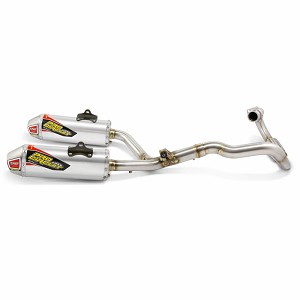 PRO CIRCUIT T-6 Dual System with removable Spark ArrestorCRF450 13-14The T-6 Stainless Steel Exhaust System offers the same benefits as the Ti-6 Titanium Exhaust System, but the T-6 is constructed of stainless steel throughout the head pipe, mid pipe and end-cap while the canister is constructed of aluminum for increased durability and a more affordable alternative to titanium. Although the T-6 will not pass FIM sound requirements seen in professional racing here in the states or in Europe, the T-6 is still a great system for any off-road rider or closed course racer in terms of improved performance, durability and its inexpensive price tag. In addition to all of these features, the T-6 will come with a removable USFS approved spark arrestor making it easy for riders to alternate between off-road and closed course racing. Features Include: •Improves performance •Stainless steel construction throughout head pipe, mid pipe, and end-cap •Aluminum canister construction •Equipped with RC-4 Resonance Chamber to reduce noise output •Machined aluminum muffler bracket for increased strength and durability •Asymmetrical muffler configuration for increased packing volume •Machined mid pipe to head pipe joint for a better, leak free fit •Removable USFS approved spark arrestor •TIG precision welding •Made in the USALeverbaar vanaf eind November 2013 !!