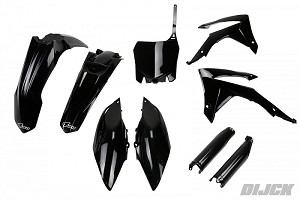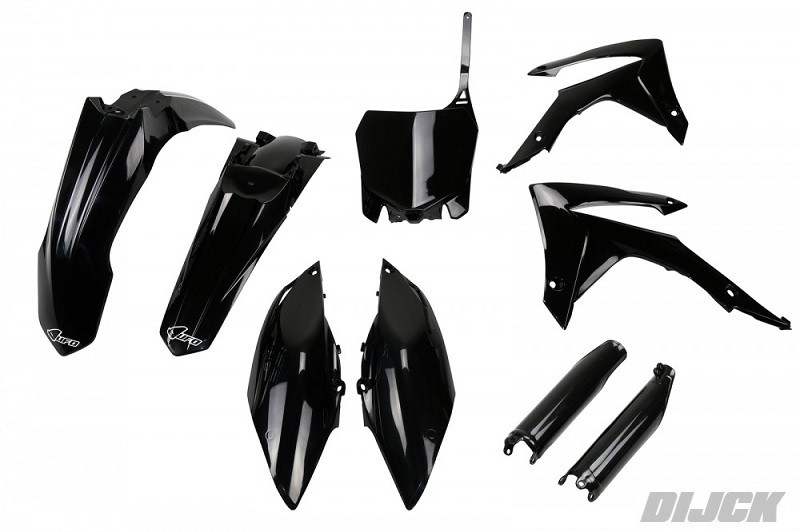 UFO Plastic Kit ZWART / BLACKHONDACRF250 14-17CRF450 13-16 Kit includes:- Front Fender Black- Rear Fender Black- Radiator Scoops Black- Side Panels Black- Front Number Plate BlackSKU: HOKIT116#001, HOKIT116001, HOKIT116