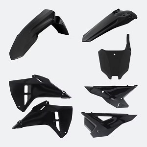 Kit Includes: - Front Numberplate Black - Side Panels Black - Radiator Scoops Black - Front Fender Black - Rear Fender Black - Airboxcovers Black