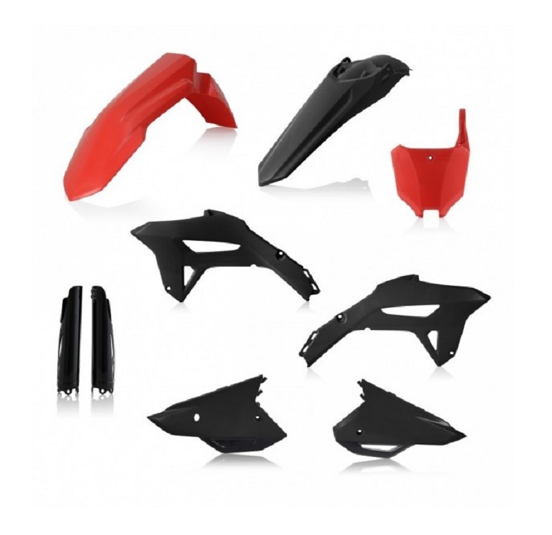 Kit Content: - Front Fender Red - Rear Fender Black - Side Panels Black - Radiator Scoops Black - Numberplate Red - Forkguards Black