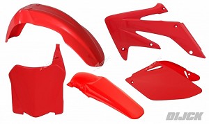 RACETECH Plastic Kit CR250F 08-09 RED - Front Fender Red - Rear Fender Red - Side Panels Red - Radiator Scoops Red - Front Number Plate Red