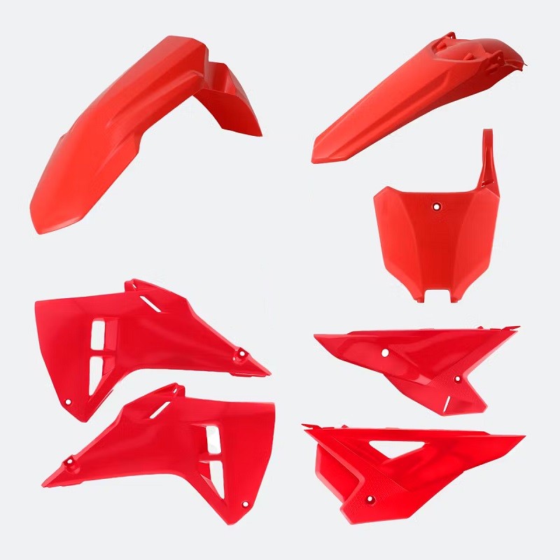Kit Includes: - Front Numberplate Red - Side Panels Red - Radiator Scoops Red - Front Fender Red - Rear Fender Red - Airboxcovers Red