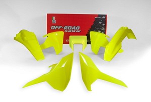 RACETECH Plastic Kit HVA FE250/350/450/501 OEM Colour 17-19 - Front Fender Fluor Yellow - Rear Fender Fluor Yellow - Side Panels Fluor Yellow - Radiator Scoops Fluor Yellow - Front Number Plate Fluor Yellow