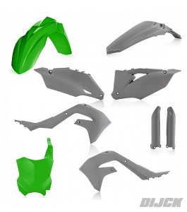 ACERBIS Plastic Kit (6 Pieces) GREY/GREEN KXF450 19-23 / KXF250 21-23 - Front Fender Green - Rear Fender Grey - Side Panles Grey - Radiator Scoops Grey - Front Number Plate Green - Fork Guards Grey