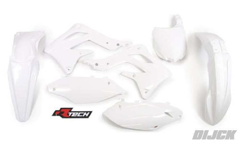 RACETECH Plastic Kit KX450F 12-14 WHITE Front Fender White Rear Fender White Radiator Scoops White Side Panels White Number Plate White