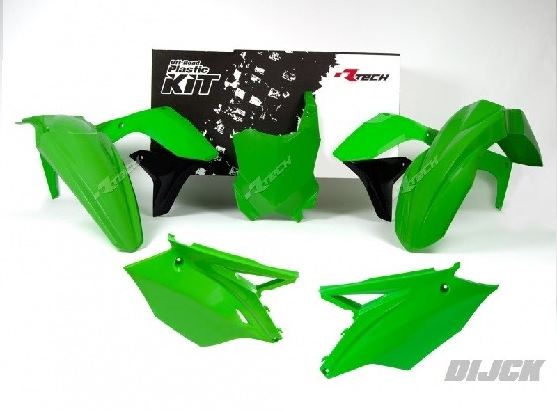 RACETECH Plastic Kit KX450F 16-18 GREEN Front Fender Green Rear Fender Green Radiator Scoops Green Side Panels Green Number Plate Green