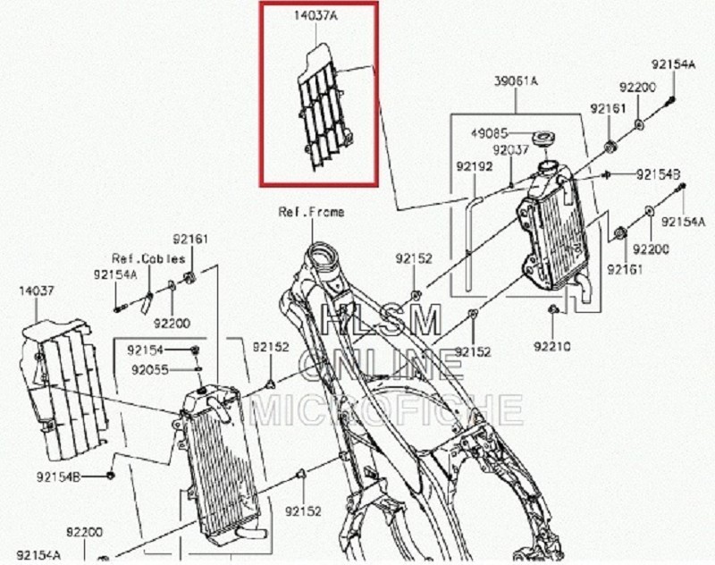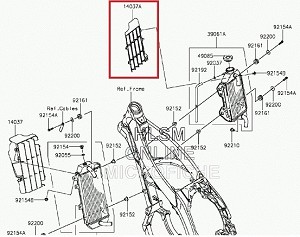 KX OEM Radiateur Rooster RechtsKX OEM Radiator Screen RightKXF250 11-16Kawsaki Partnumber 14037-0745-6C