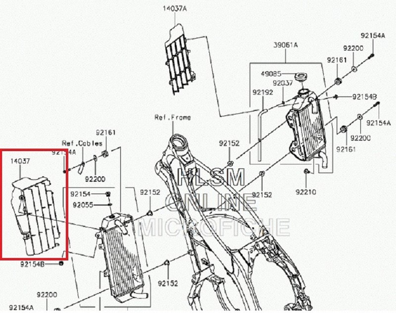 KX OEM Radiateur Rooster LinksKX OEM Radiator Screen LeftKAWASAKIKXF450 16-20KAWASAKI Partnumber 14037-0767-6C, 1403707676C