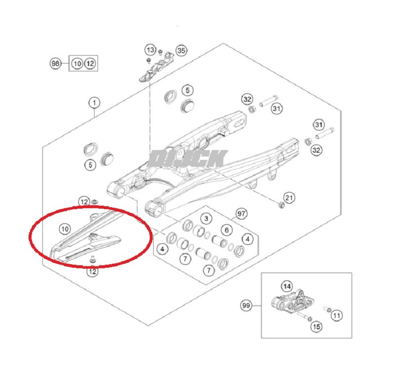 KTM OEM KettingstripKTM OEM Chain Slider Inclusief BevestigingsboutjesKTMSX65 16-26 HUSQVARNATC65 17-26 GASGASMC65 21-26 KTM OEM Part # 46304066000