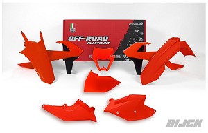 RACETECH Plastic Kit EXC125-300 17-19 / EXC-F250-500 17-19 NEON ORANGE - Front Fender Neon Orange - Rear Fender Neon Orange - Radiator Cover Neon Orange - Side Panels Neon Orange - Airboxcover Left Neon Orange - Headlight Plastic Neon Orange