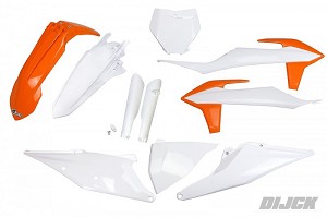 UFO Plastic Kit SX125-150-250 19-22 / SXF250/350/450 19-22 / SXF450 FACTORY EDITION 18-22 / XC-F 250-350-450 19-22 / XC 250-300 19-22 White / Orange