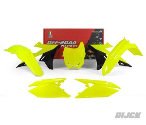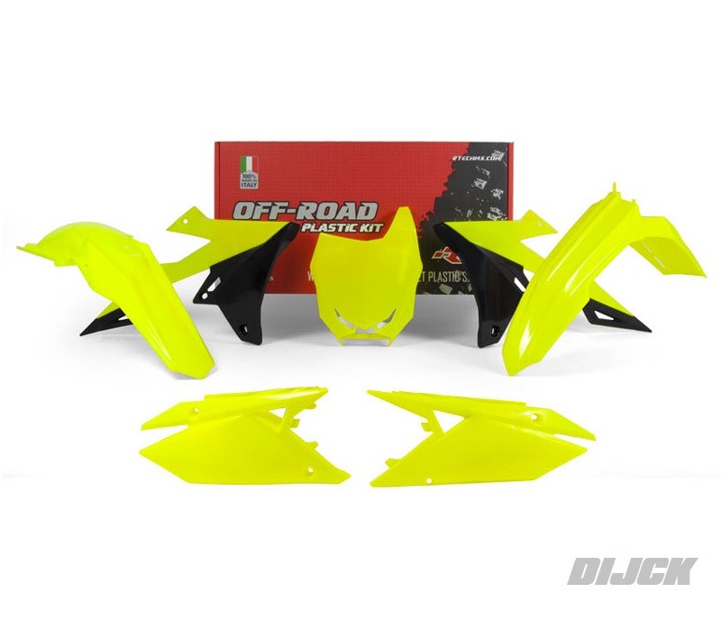 RACETECH Plastic Kit OEM RMZ250 19-22 / RMZ450 18-22 FLUOR YELLOW- Front Fender Fluor Yellow- Rear Fender Fluor Yellow- Radiator Scoops Fluor Yellow / Black- Side Panels Fluor Yellow- Front number plate Fluor Yellow