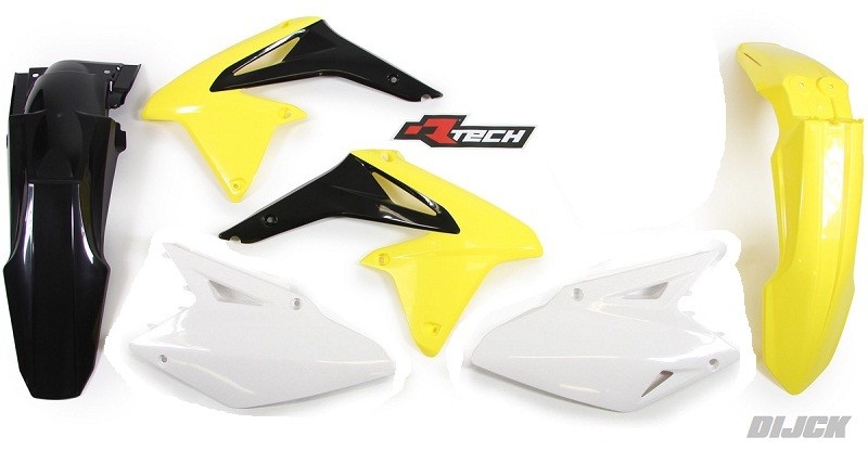 RACETECH Plastic Kit RMZ450 08-17 OEM - Front Fender Yellow - Rear Fender Black - Radiator Scoops Yellow/Black - Side Panels White