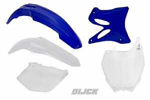 RACETECH OEM Plastic Kit YZ125/250 02-14 - Side Panels White - Radiator Scoops Blue - Front Fender Blue - Rear Fender Blue - Front number Plate White