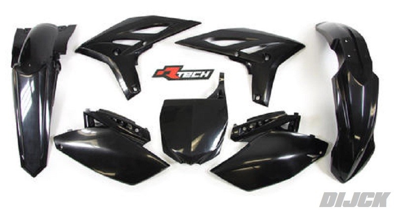 RACETECH Plastic Kit YZ250F 10-13 BLACK - Front Fender Black - Rear Fender Black - Side Panels Black - Radiator Scoops Black - Front Number Plate Black