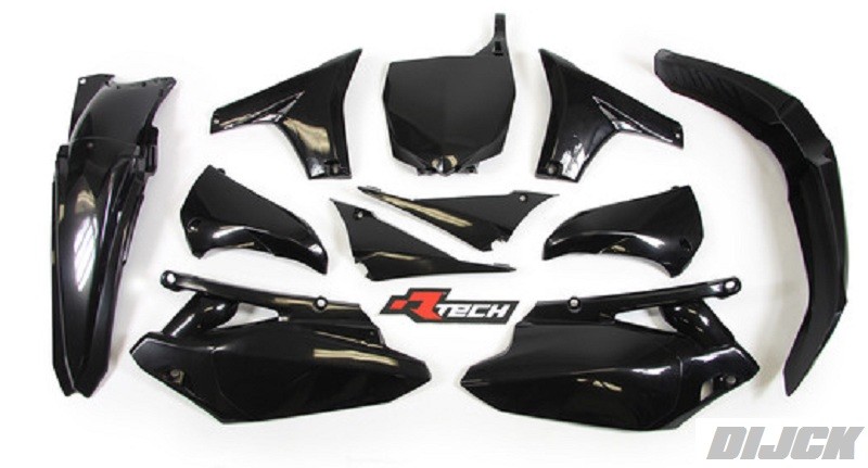 RACETECH Plastic Kit YZ450F 10-13 BLACK - Front Fender Black - Rear Fender Black - Side Panels Black - Lower Radiator Scoops Black - Upper Radiator Scoops Black - Front Number Plate Black