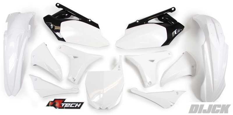 RACETECH Plastic Kit YZ450F 10-13 WHITE - Front Fender White - Rear Fender White - Upper Radiator Scoops White - Lower Radiator Scoops White - Side Panels White/Black - Front Number Plate White
