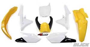 RACETECH Plastic Kit YZF250 14-18 / YZF450 14-17 YELLOW - Front Fender Yellow - Rear Fender Yellow - Side Panels White - Lower Radiator Scoops White - Upper Radiator Scoops Yellow/Black - Front Number Plate White