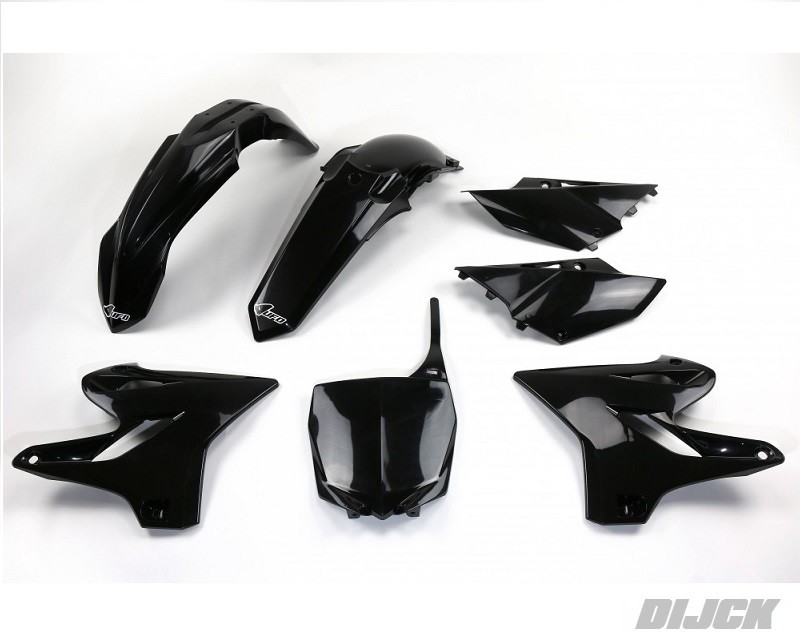 UFO Plastic Kit BLACKYAMAHAYZ125 15-21YZ250 15-21Kit icludes:- Side Panels Black- Radiator Scoops Black- Front Fender Black- Rear Fender Black- Front number Plate BlackSKU: YAKIT319#001, YAKIT319001, YAKIT319