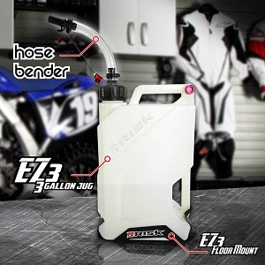 RISK RACING EZ3 Gas Can 10 liter CLEARBanzine kan met een inhoud van 10 liter, mooie maat voor mee te nemen naar de wedstrijden.Heldere kleur, je kunt dus orecies zien hoeveel er nog in de kan zit.Als extra's los leverbaar:Risk EZ3 FLOOR MOUNT, met deze montageset staat de kan altijd vast in de bus of op de aanhanger.Risk Hose Bender, Benzinekan Jerrycan