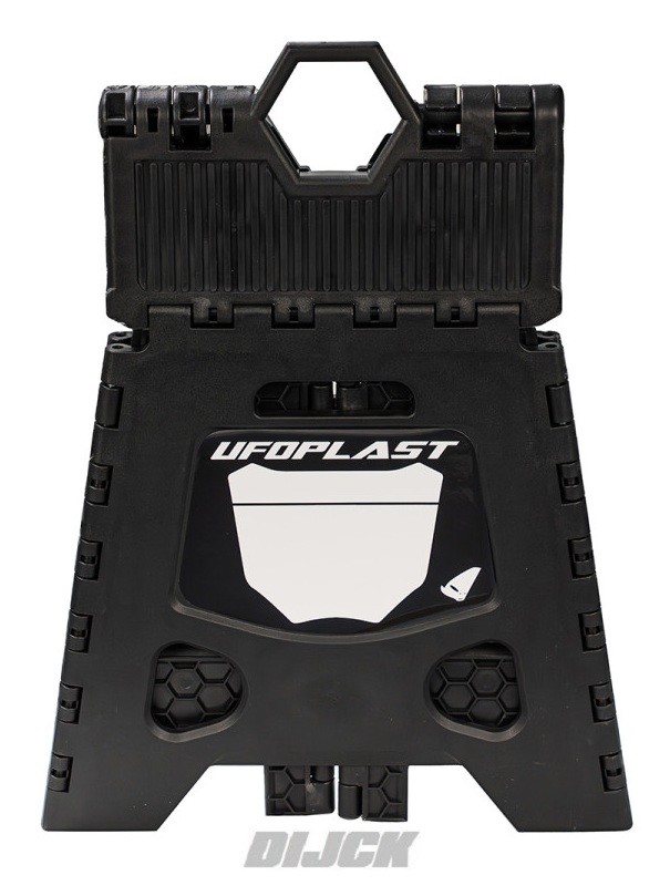 De opvouwbare Bike Stand Tyborn biedt maximale stabiliteit en ruimtebesparing voor gebruik in werkplaatsen en op het circuit. Gemaakt van zeer sterk polypropyleen, met een antislip TPE-rubberen bovenkant en stalen scharnieren. Volledig opvouwbaar om het volume tijdens transport te minimaliseren, met geïntegreerde draagbeugel. Gemakkelijk te openen en te sluiten. Maximaal draagvermogen: 250 kg.
