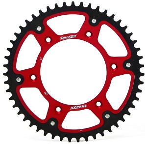 SUPERSPROX STEALTH Rear Sprocket 49TROOD / REDHONDACR125 87-08CR250 87-08CRF250 04-25CRF450 02-25Supersprox has been making the stealth now for over 7 years, and they haven't made a change to it since that time. The reason for no changes is it was built right the first time, and it has been proved right over and over and over again. The stealth is a special designed product that consists of a aluminum build, with steel teeth attached to give it the extra long life.• High performance rear sprocket with lifetime guarantee • Supersprox gives you longer system life without compromising weight • The steel teeth last 3 times longer than aluminum • The aluminum core is 70% lighter than steel • CNC matched 7075 T-6 core • Used by factory and pro teamsAchtertandwiel Met Stalen RandSKU: RST210