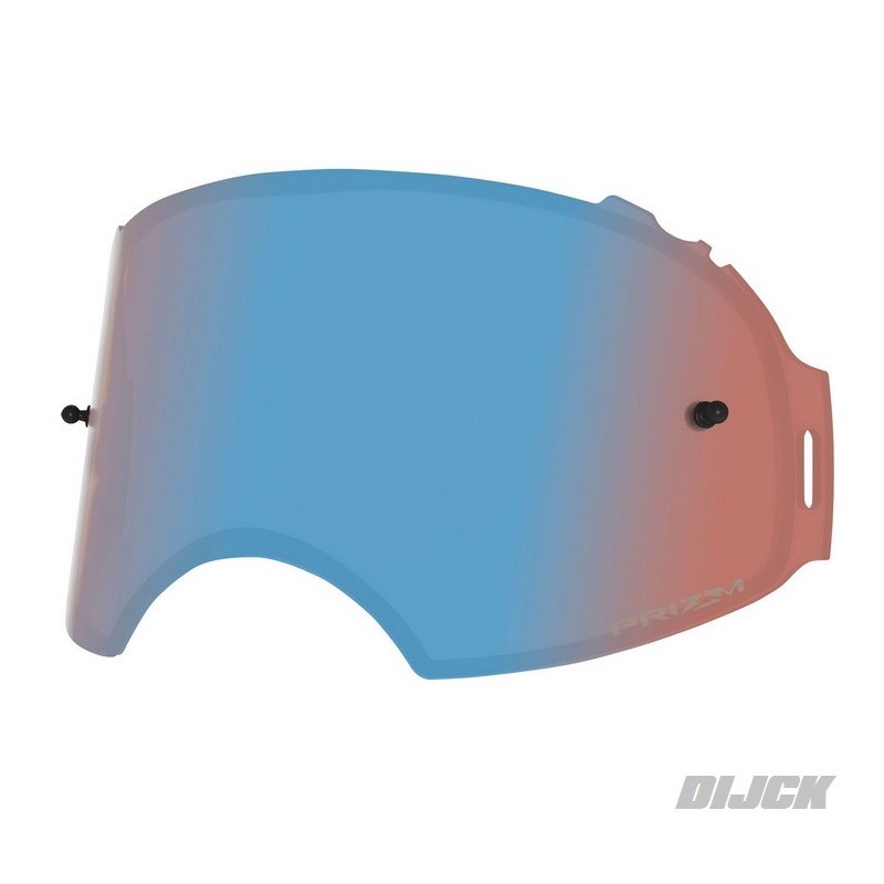 OAKLEY Lens Airbrake PRIZM Sapphire IridiumAIRBRAKE™ PRIZM MX REPLACEMENT LENSESPrizm™ MX lenses help you see subtle transitions in dirt conditions so you can master all those split-second decisions. Mother Nature has a ton of gears, and she’ll shift on you without warning. Be ready for any light condition. These replacement lenses cover the full range. We engineered them for our premium Airbrake™ MX Goggle and each one is made of durable Plutonite® with anti-fog technology. You’ll have full-on UV protection, impact resistance and a level of clarity worthy of the world’s most technically advanced performance goggle. Important Note: Use care when installing/removing accessory lenses. Scratched lenses can not be returned and are not covered under Oakley’s warranty policy