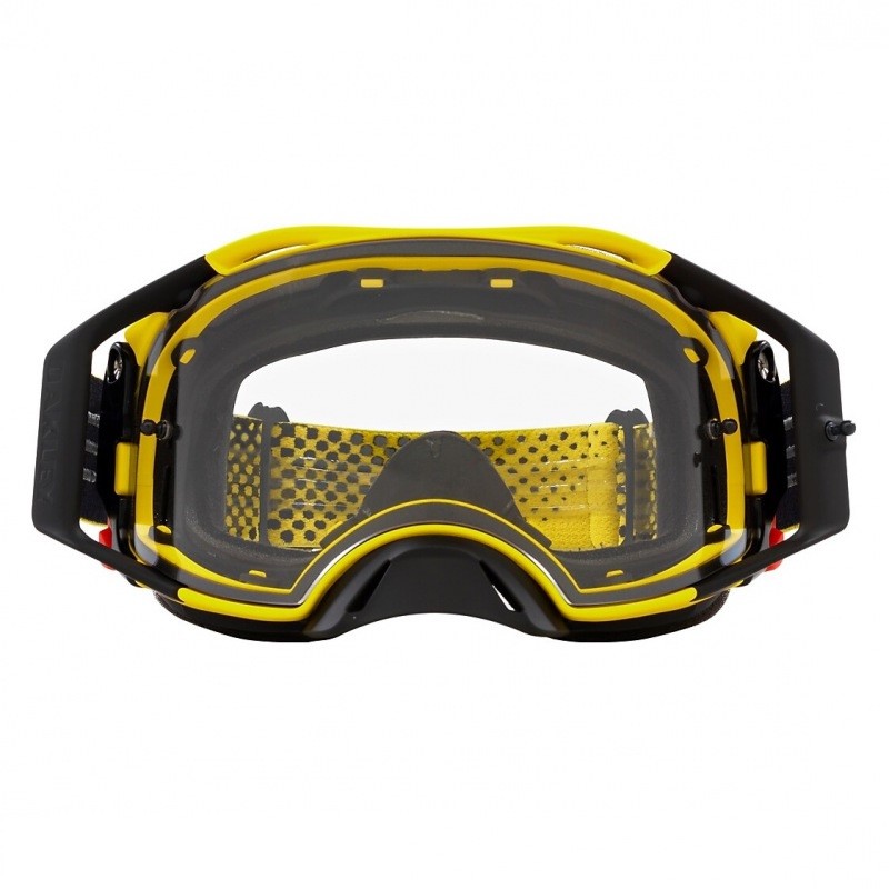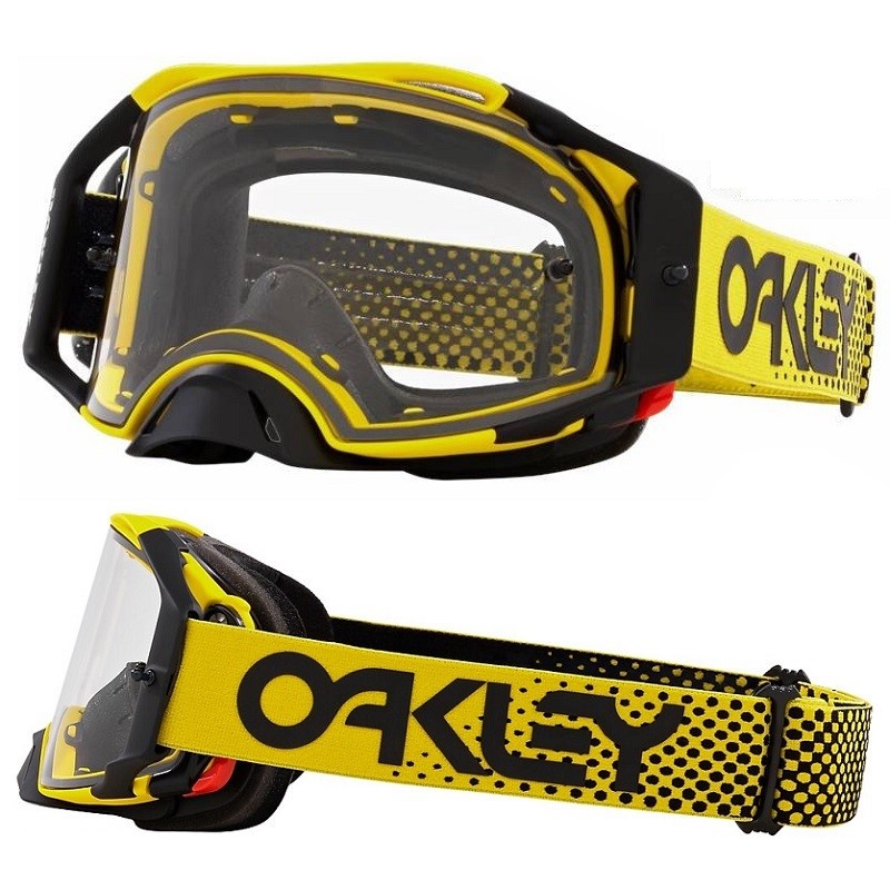 OAKLEY Airbrake MX Goggle Moto Yellow B1BClear LensDiscription:With high-impact resistance that makes you invincible, this landmark of technology is the first even MX design with a lens of pure Plutonite™. It's the new standard of protection and it lets you take the adapt-and-conquer approach with Oakley Switchlock™ Technology, the secret to fast and easy lens changing. The view is wide open, the comfort is beyond reason and the performance leaves other goggles scrambling for second place.SKU: OO7046-B5