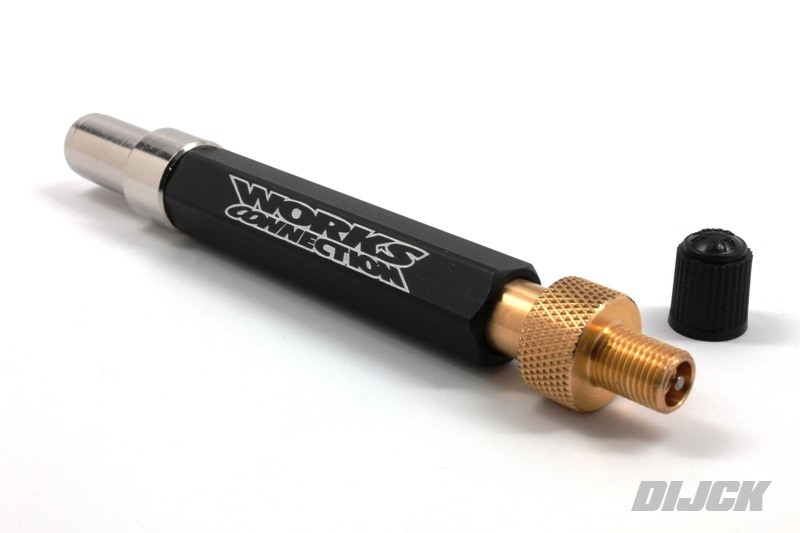 WORKS CONNECTION No Air Loss AdaptorThe No Loss Air Adaptor ensures the air pressure you set is the air pressure you get! No air loss, no hassle.No air loss at disconnect- Especially useful when accessing the lower air chamber at bottom of fork- For use on Air Forks and Air Shocks- Perfect for motorcycles and mountain bikes- Works with all Schrader type pumps