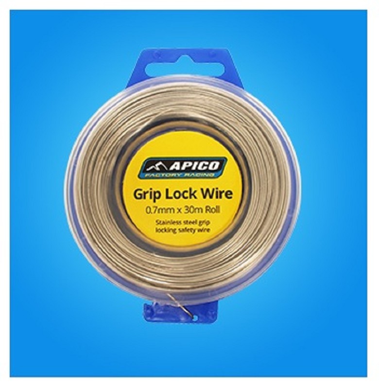 APICO Safety Wire 0.8mm Roll 30 MeterThe Apico Factory Racing Grip Lock Wire (Safety Wire) is supplied in 30 metre roll at 0.7mm thick. The stainless steel grip locking safety wire comes in a handy blue container for easy storage and accessibility.Also see the safety wire pliers FXWT 50200 55BK.SKU: SAFETY_WIRE_ROLL_API