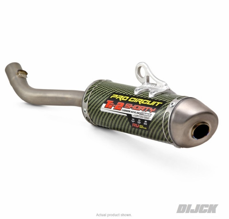 Silencer Description: Introducing the Ryan Villopoto spec Ti-2 Shorty Carbon Kevlar/Titanium Silencer, a silencer fitted for a multi-time champion that can now be bolted onto your YZ125. The Pro Circuit Ti-2 RV Silencer offers a professional look and a factory sound. When compared to a stock silencer, the RV Ti-2 version increases power on the bottom-end. The RV Ti-2 silencer is the perfect option for YZ125 riders looking to increase performance and is intended for closed-course racing only.