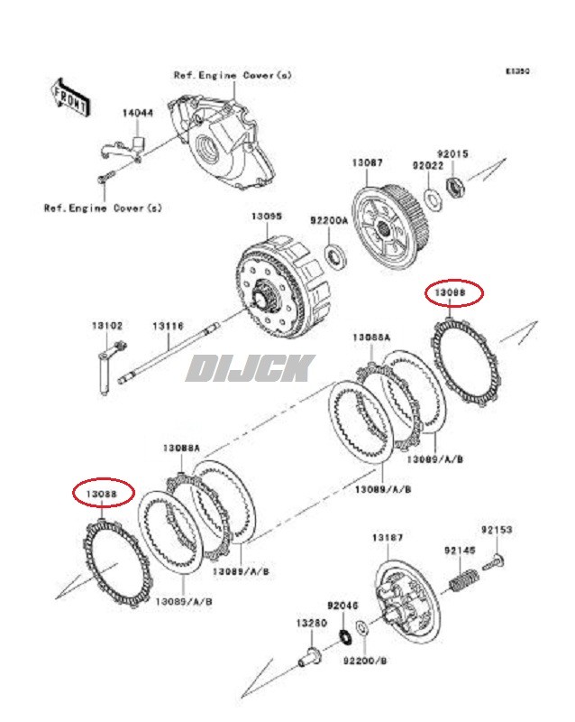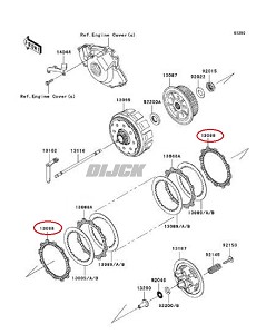 KXF450 2019 Benodigde Platen: 1x 13088-0010 (laatste plaat bij drukplaat) 6x 13081-0051 (middelste platen) 1x 13088-0600 (eerste plaat)