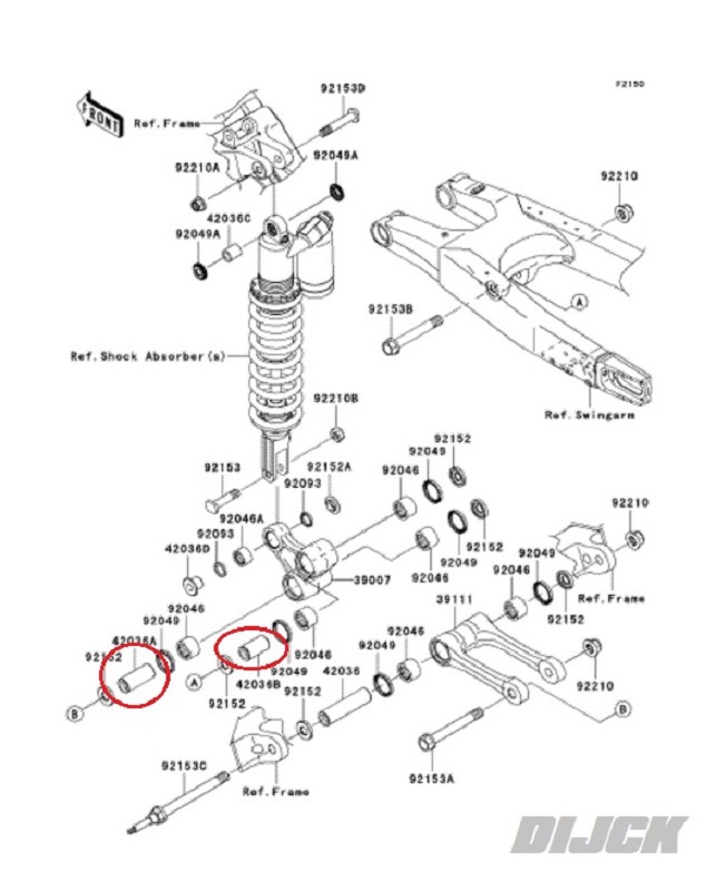 KAWASAKI OEM Bushinge Bearing KAWASAKI Originele Bus LinksysteemKX125 99-08KX250 99-08KXF250 04-19KXF450 06-19SKU: 42036-0015