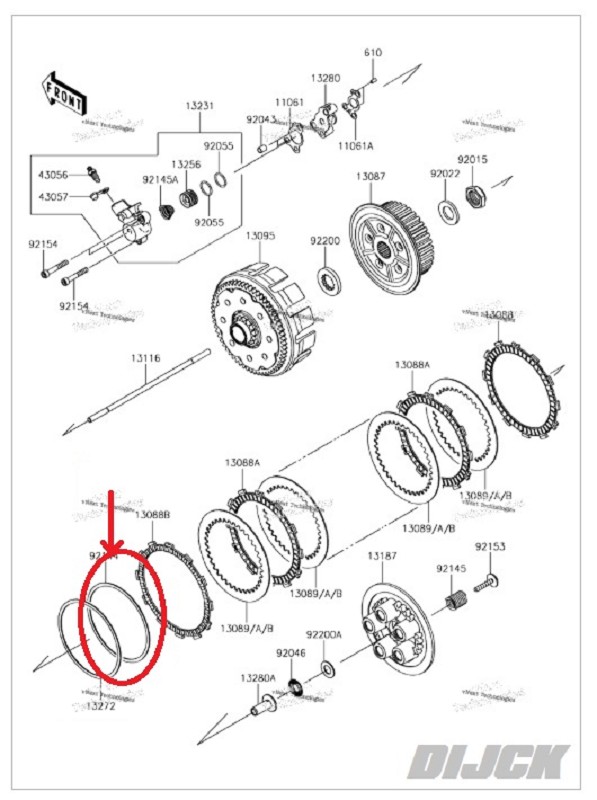 Origional Kawasaki Clutch Plate (per piece) Needed plates: 1x 13272-2599 1x 92144-1591 7x 13089-1095